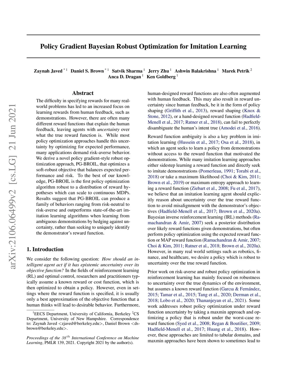 Policy Gradient Bayesian Robust Optimization for Imitation Learning