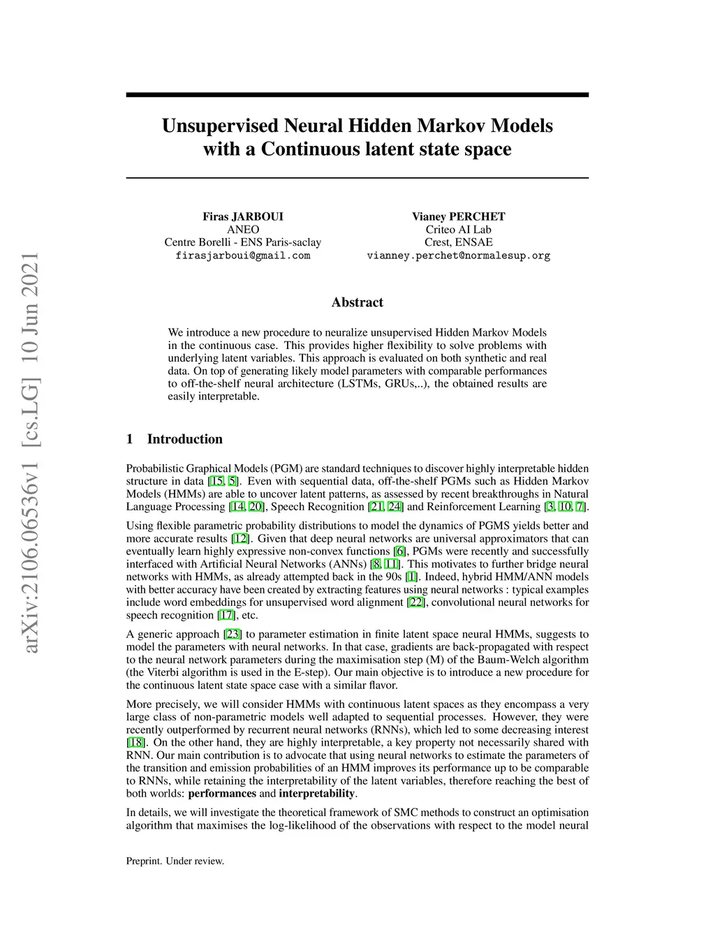 We introduce a new procedure to neuralize unsupervised Hidden Markov Models in the continuous case. This provides higher flexibility to solve problems with underlying latent variables. This approach is evaluated on both synthetic and real data. On top of generating likely model parameters with comparable performances to off-the-shelf neural architecture (LSTMs, GRUs,..), the obtained results are easily interpretable.