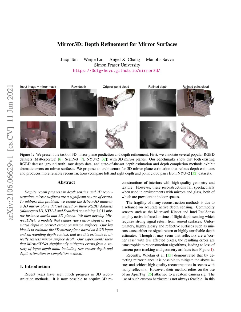 Mirror3D: Depth Refinement for Mirror Surfaces