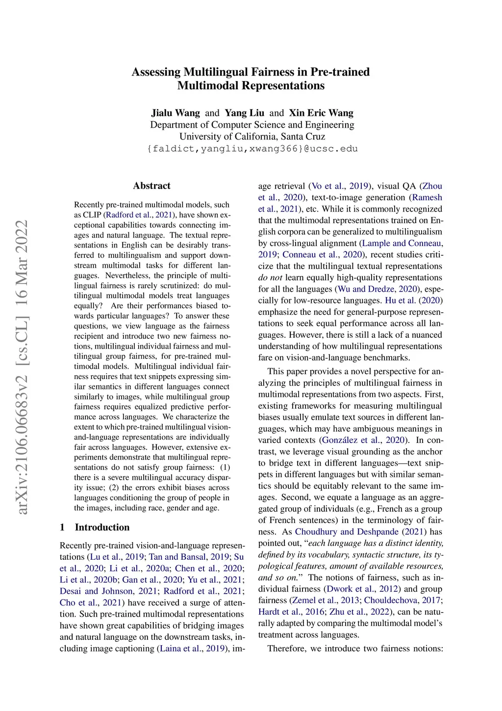 Assessing Multilingual Fairness in Pre-trained Multimodal