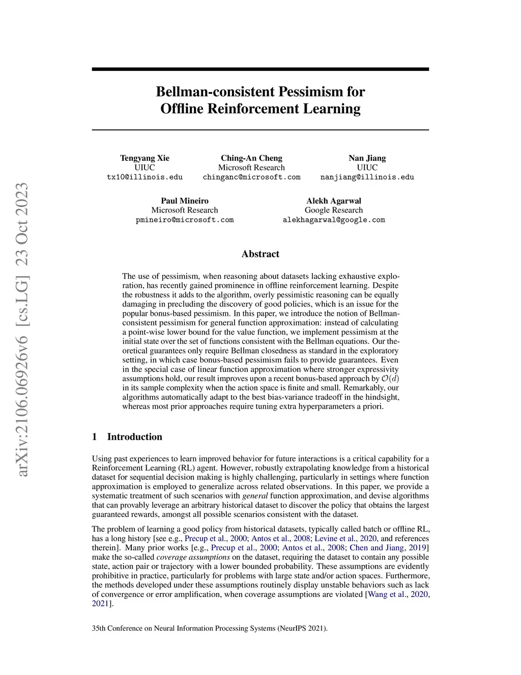 Bellman-consistent Pessimism for Offline Reinforcement Learning