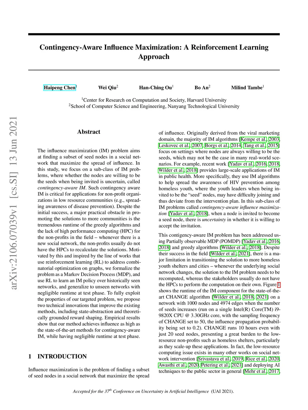 Contingency-Aware Influence Maximization: A Reinforcement Learning