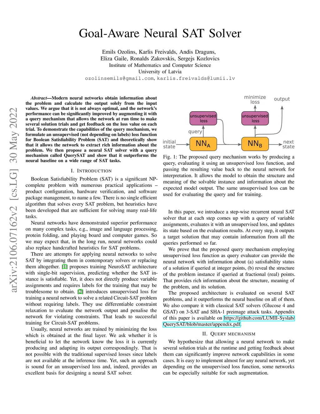 Modern neural networks obtain information about the problem and calculate the output solely from the input values. We argue that it is not always optimal, and the network's performance can be significantly improved by augmenting it with a query mechanism that allows the network at run time to make several solution trials and get feedback on the loss value on each trial. To demonstrate the capabilities of the query mechanism, we formulate an unsupervised (not depending on labels) loss function for Boolean Satisfiability Problem (SAT) and theoretically show that it allows the network to extract rich information about the problem. We then propose a neural SAT solver with a query mechanism called QuerySAT and show that it outperforms the neural baseline on a wide range of SAT tasks.