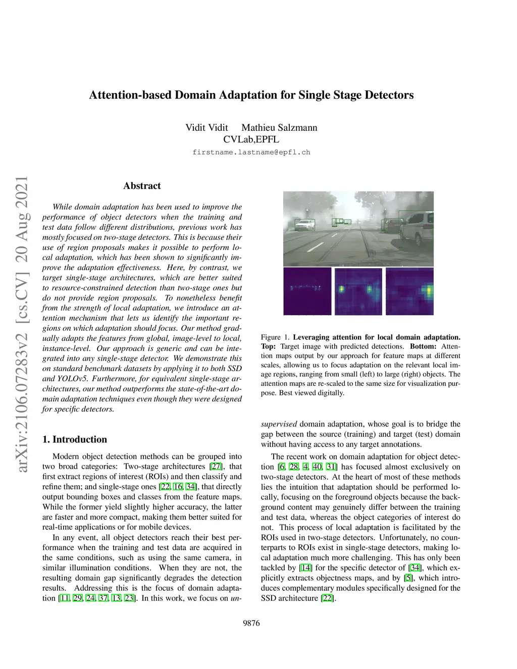 Attention-based Domain Adaptation for Single Stage Detectors