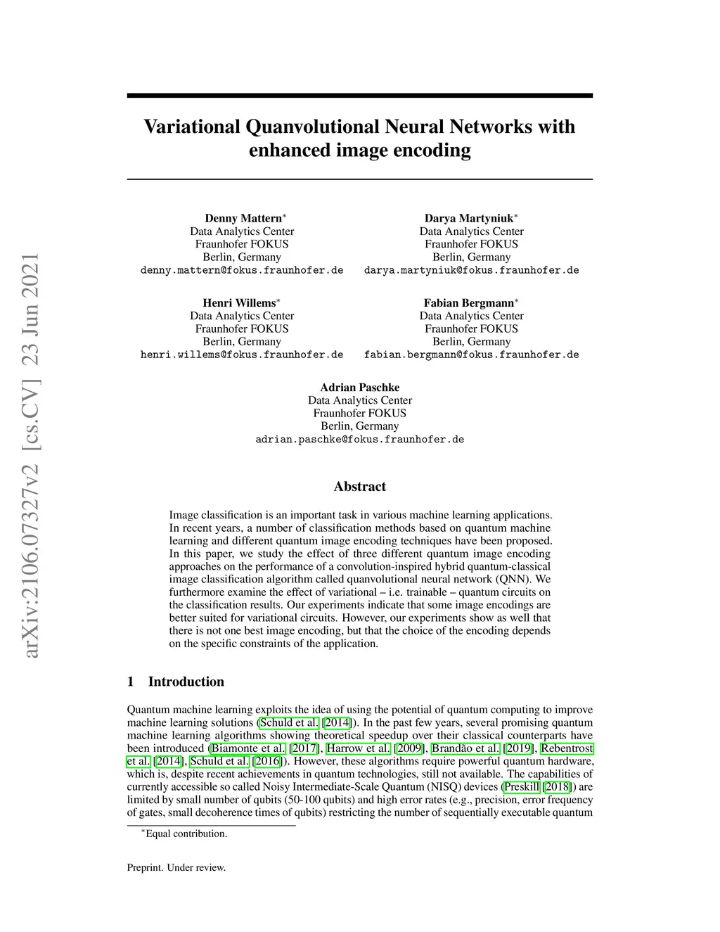 Variational Quanvolutional Neural Networks with enhanced image encoding