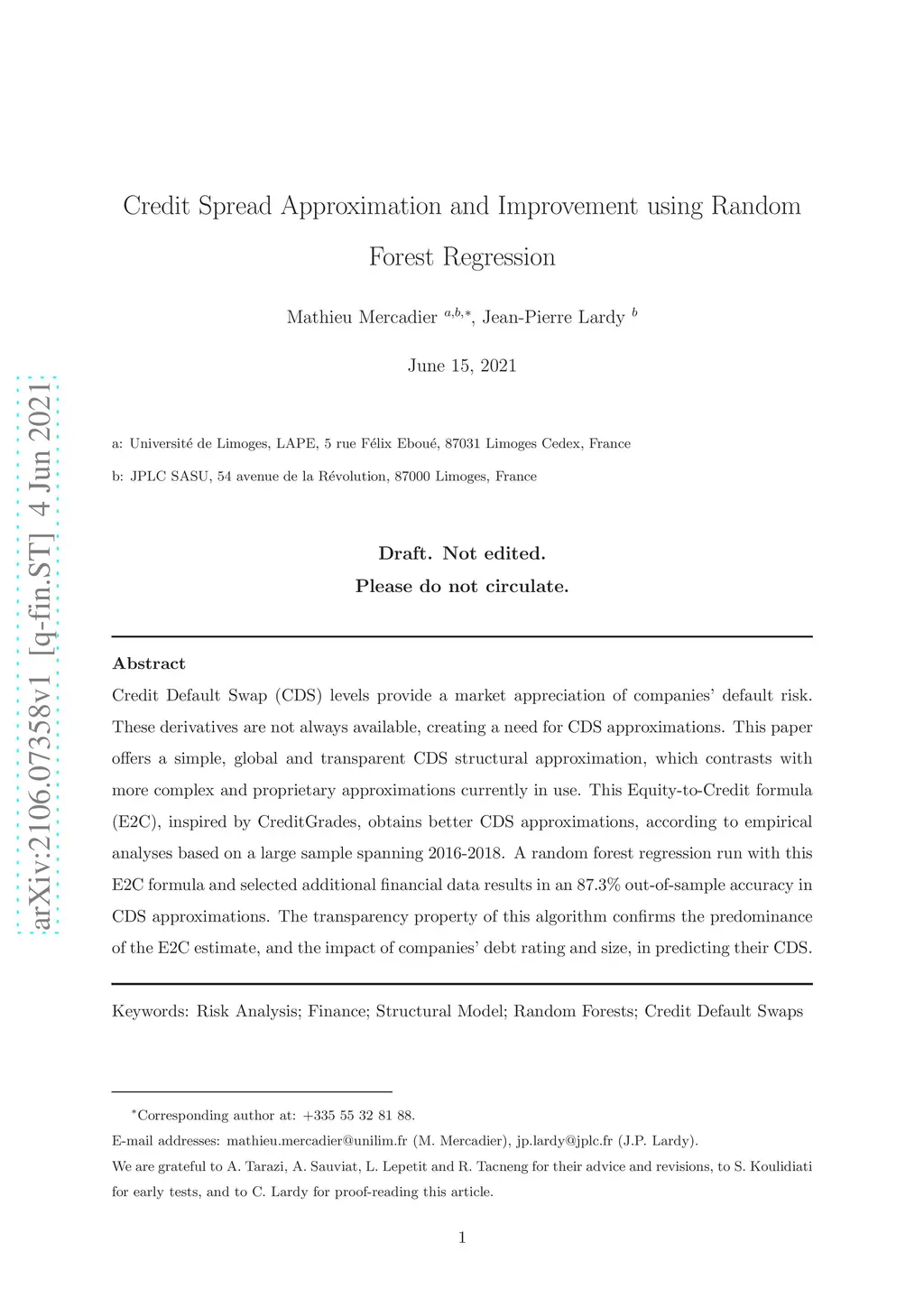 Credit Default Swap (CDS) levels provide a market appreciation of companies' default risk. These derivatives are not always available, creating a need for CDS approximations. This paper offers a simple, global and transparent CDS structural approximation, which contrasts with more complex and proprietary approximations currently in use. This Equity-to-Credit formula (E2C), inspired by CreditGrades, obtains better CDS approximations, according to empirical analyses based on a large sample spanning 2016-2018. A random forest regression run with this E2C formula and selected additional financial data results in an 87.3% out-of-sample accuracy in CDS approximations. The transparency property of this algorithm confirms the predominance of the E2C estimate, and the impact of companies' debt rating and size, in predicting their CDS.