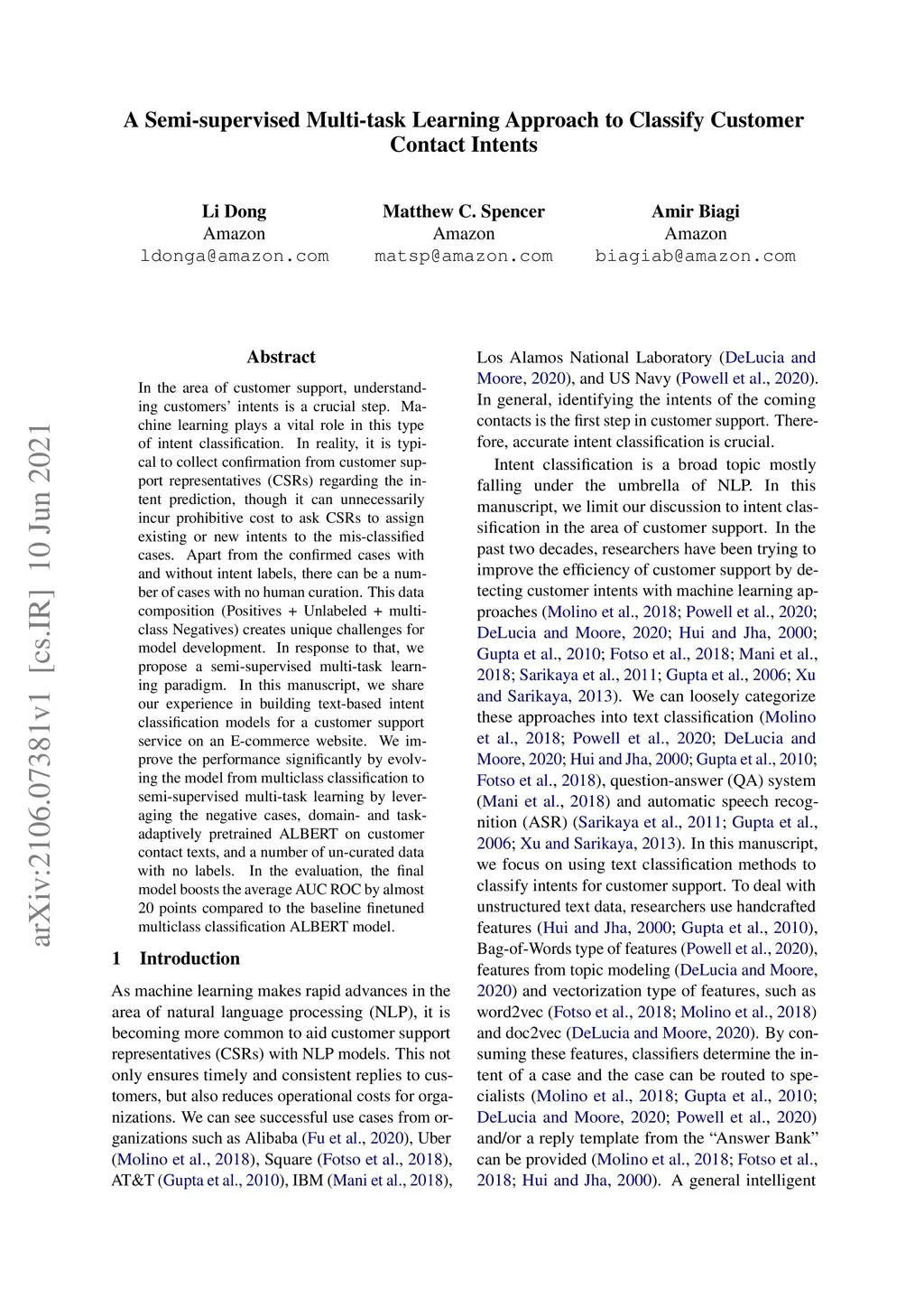 A Semi-supervised Multi-task Learning Approach to Classify Customer