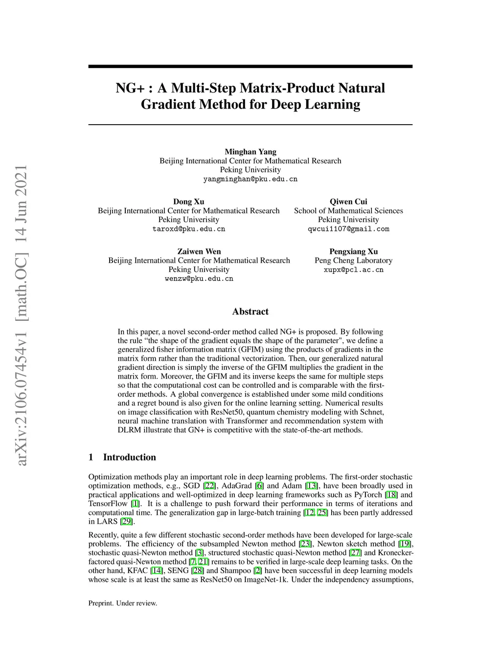 In this paper, a novel second-order method called NG+ is proposed. By following the rule ``the shape of the gradient equals the shape of the parameter", we define a generalized fisher information matrix (GFIM) using the products of gradients in the matrix form rather than the traditional vectorization. Then, our generalized natural gradient direction is simply the inverse of the GFIM multiplies the gradient in the matrix form. Moreover, the GFIM and its inverse keeps the same for multiple steps so that the computational cost can be controlled and is comparable with the first-order methods. A global convergence is established under some mild conditions and a regret bound is also given for the online learning setting. Numerical results on image classification with ResNet50, quantum chemistry modeling with Schnet, neural machine translation with Transformer and recommendation system with DLRM illustrate that GN+ is competitive with the state-of-the-art methods.