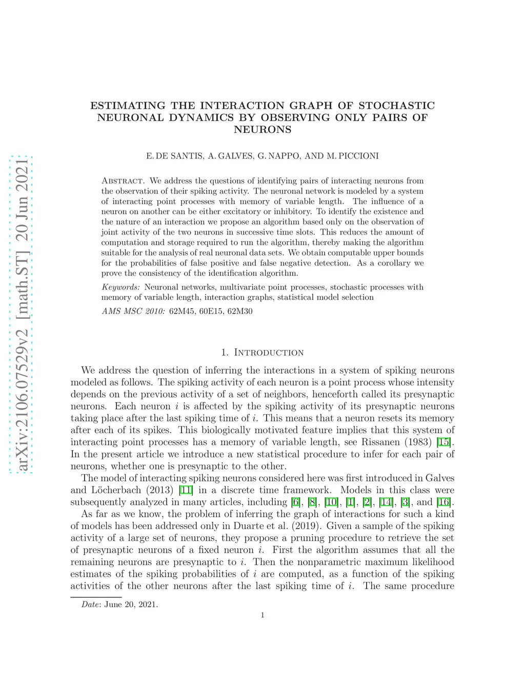 We address the questions of identifying pairs of interacting neurons from the observation of their spiking activity. The neuronal network is modeled by a system of interacting point processes with memory of variable length. The influence of a neuron on another can be either excitatory or inhibitory. To identify the existence and the nature of an interaction we propose an algorithm based only on the observation of joint activity of the two neurons in successive time slots. This reduces the amount of computation and storage required to run the algorithm, thereby making the algorithm suitable for the analysis of real neuronal data sets. We obtain computable upper bounds for the probabilities of false positive and false negative detection. As a corollary we prove the consistency of the identification algorithm.