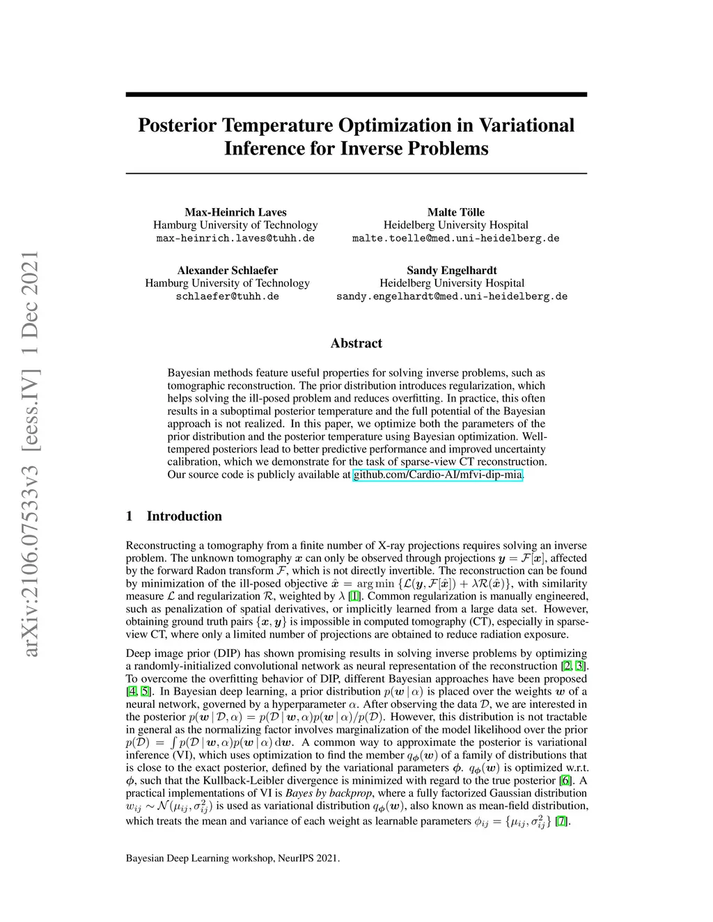 Bayesian methods feature useful properties for solving inverse problems, such as tomographic reconstruction. The prior distribution introduces regularization, which helps solving the ill-posed problem and reduces overfitting. In practice, this often results in a suboptimal posterior temperature and the full potential of the Bayesian approach is not realized. In this paper, we optimize both the parameters of the prior distribution and the posterior temperature using Bayesian optimization. Well-tempered posteriors lead to better predictive performance and improved uncertainty calibration, which we demonstrate for the task of sparse-view CT reconstruction.