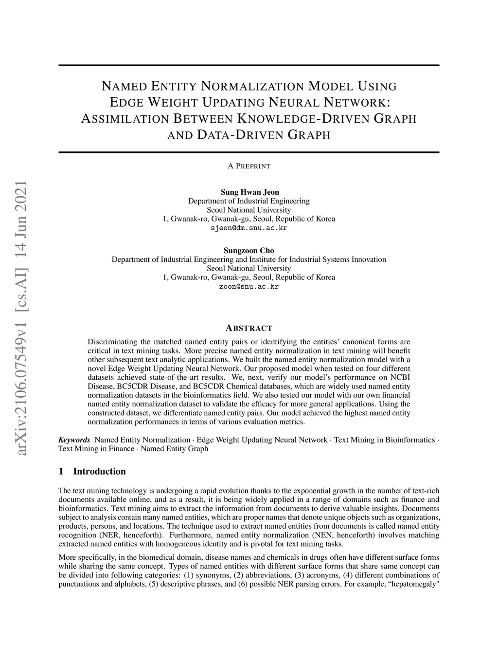 Named Entity Normalization Model Using Edge Weight Updating Neural