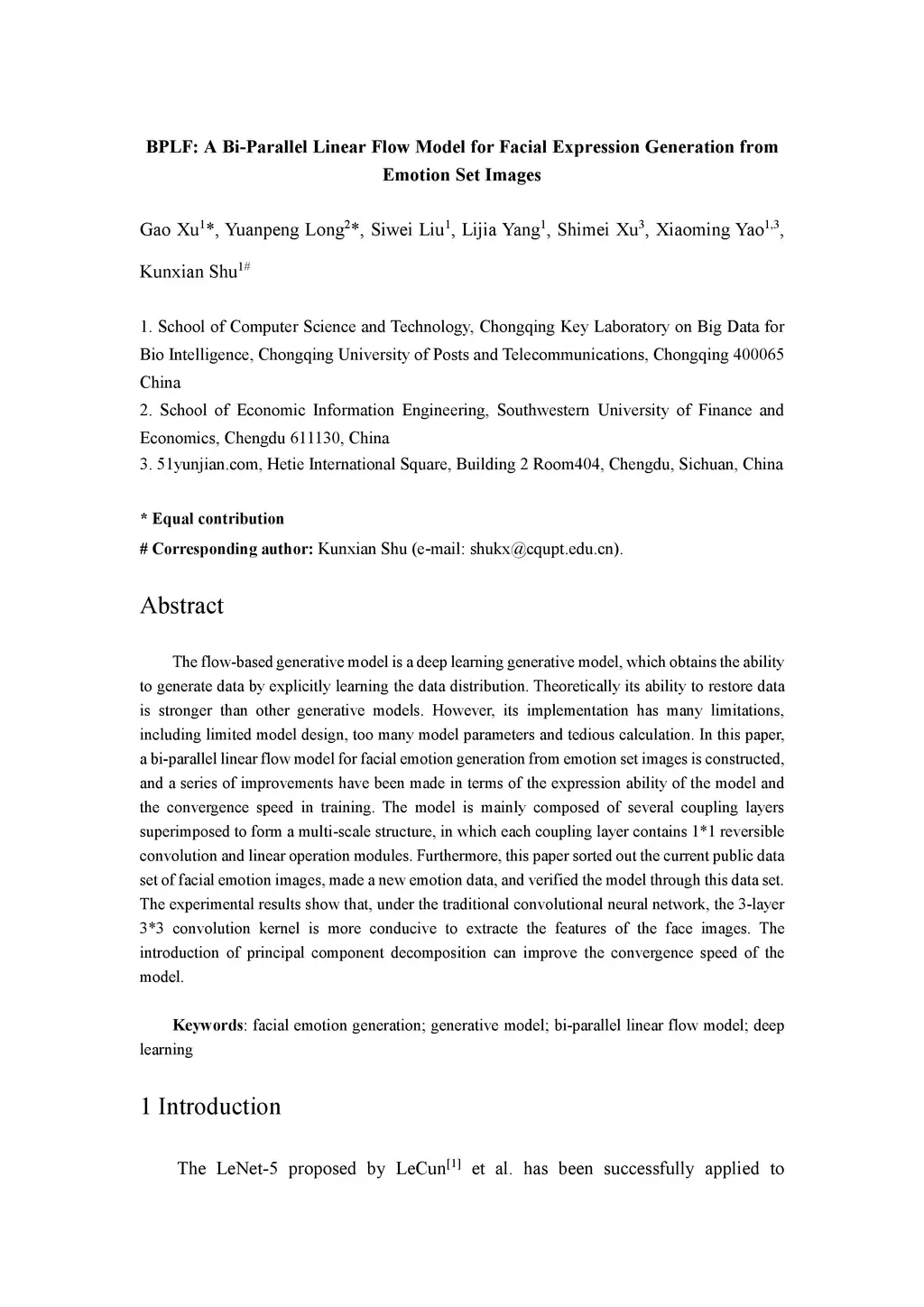 BPLF: A Bi-Parallel Linear Flow Model for Facial Expression Generation