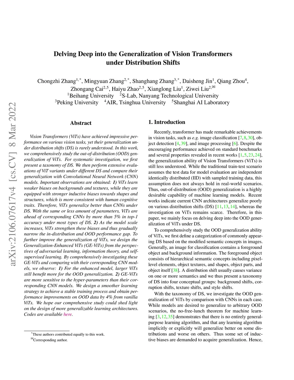 Vision Transformers (ViTs) have achieved impressive performance on various vision tasks, yet their generalization under distribution shifts (DS) is rarely understood. In this work, we comprehensively study the out-of-distribution (OOD) generalization of ViTs. For systematic investigation, we first present a taxonomy of DS. We then perform extensive evaluations of ViT variants under different DS and compare their generalization with Convolutional Neural Network (CNN) models. Important observations are obtained: 1) ViTs learn weaker biases on backgrounds and textures, while they are equipped with stronger inductive biases towards shapes and structures, which is more consistent with human cognitive traits. Therefore, ViTs generalize better than CNNs under DS. With the same or less amount of parameters, ViTs are ahead of corresponding CNNs by more than 5% in top-1 accuracy under most types of DS. 2) As the model scale increases, ViTs strengthen these biases and thus gradually narrow the in-distribution and OOD performance gap. To further improve the generalization of ViTs, we design the Generalization-Enhanced ViTs (GE-ViTs) from the perspectives of adversarial learning, information theory, and self-supervised learning. By comprehensively investigating these GE-ViTs and comparing with their corresponding CNN models, we observe: 1) For the enhanced model, larger ViTs still benefit more for the OOD generalization. 2) GE-ViTs are more sensitive to the hyper-parameters than their corresponding CNN models. We design a smoother learning strategy to achieve a stable training process and obtain performance improvements on OOD data by 4% from vanilla ViTs. We hope our comprehensive study could shed light on the design of more generalizable learning architectures.