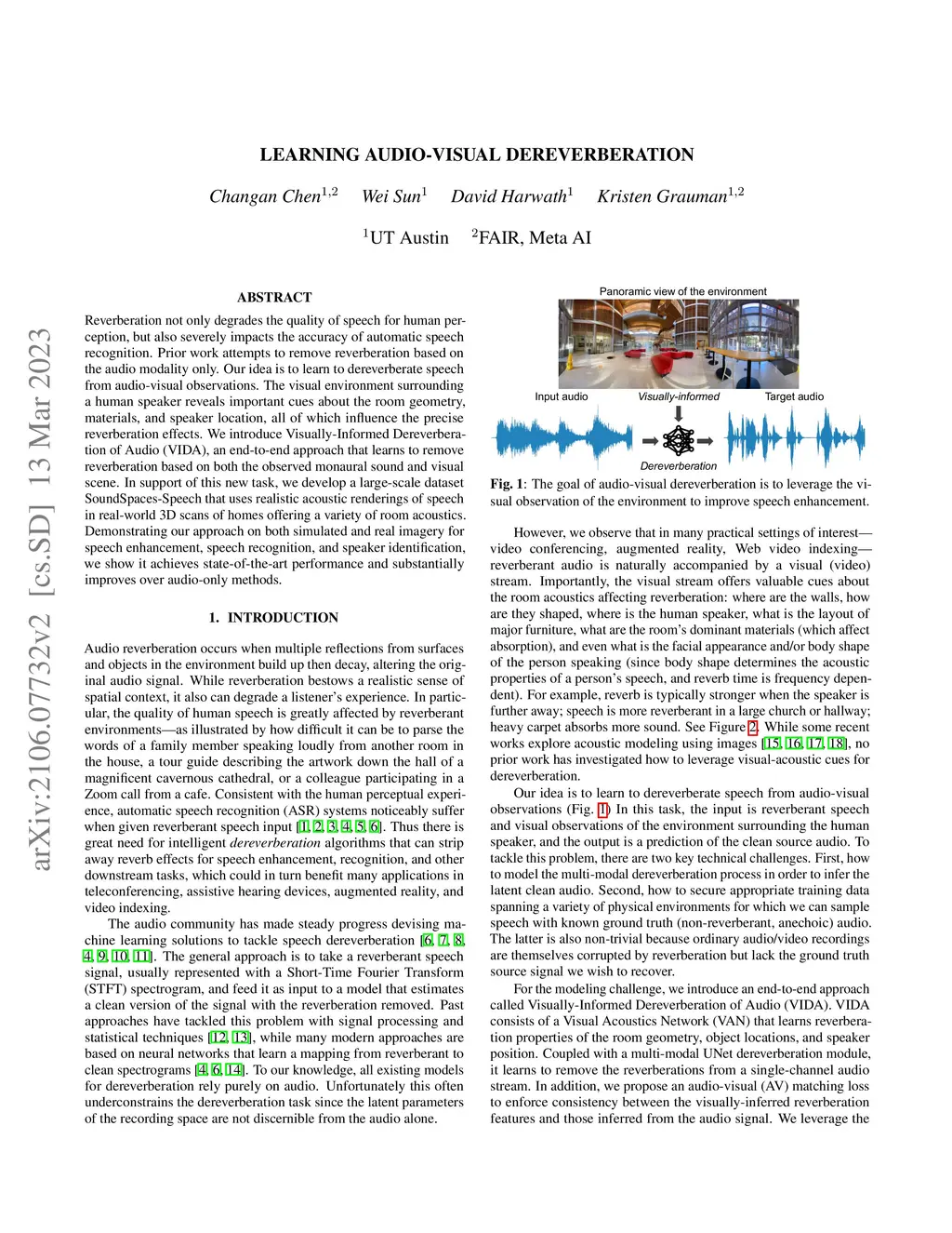 Reverberation not only degrades the quality of speech for human perception, but also severely impacts the accuracy of automatic speech recognition. Prior work attempts to remove reverberation based on the audio modality only. Our idea is to learn to dereverberate speech from audio-visual observations. The visual environment surrounding a human speaker reveals important cues about the room geometry, materials, and speaker location, all of which influence the precise reverberation effects. We introduce Visually-Informed Dereverberation of Audio (VIDA), an end-to-end approach that learns to remove reverberation based on both the observed monaural sound and visual scene. In support of this new task, we develop a large-scale dataset SoundSpaces-Speech that uses realistic acoustic renderings of speech in real-world 3D scans of homes offering a variety of room acoustics. Demonstrating our approach on both simulated and real imagery for speech enhancement, speech recognition, and speaker identification, we show it achieves state-of-the-art performance and substantially improves over audio-only methods.