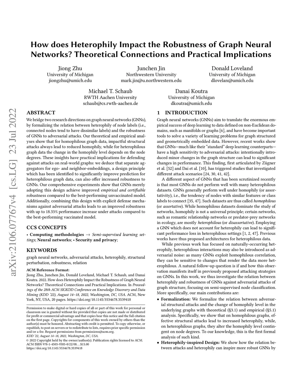 We bridge two research directions on graph neural networks (GNNs), by formalizing the relation between heterophily of node labels (i.e., connected nodes tend to have dissimilar labels) and the robustness of GNNs to adversarial attacks. Our theoretical and empirical analyses show that for homophilous graph data, impactful structural attacks always lead to reduced homophily, while for heterophilous graph data the change in the homophily level depends on the node degrees. These insights have practical implications for defending against attacks on real-world graphs: we deduce that separate aggregators for ego- and neighbor-embeddings, a design principle which has been identified to significantly improve prediction for heterophilous graph data, can also offer increased robustness to GNNs. Our comprehensive experiments show that GNNs merely adopting this design achieve improved empirical and certifiable robustness compared to the best-performing unvaccinated model. Additionally, combining this design with explicit defense mechanisms against adversarial attacks leads to an improved robustness with up to 18.33% performance increase under attacks compared to the best-performing vaccinated model.