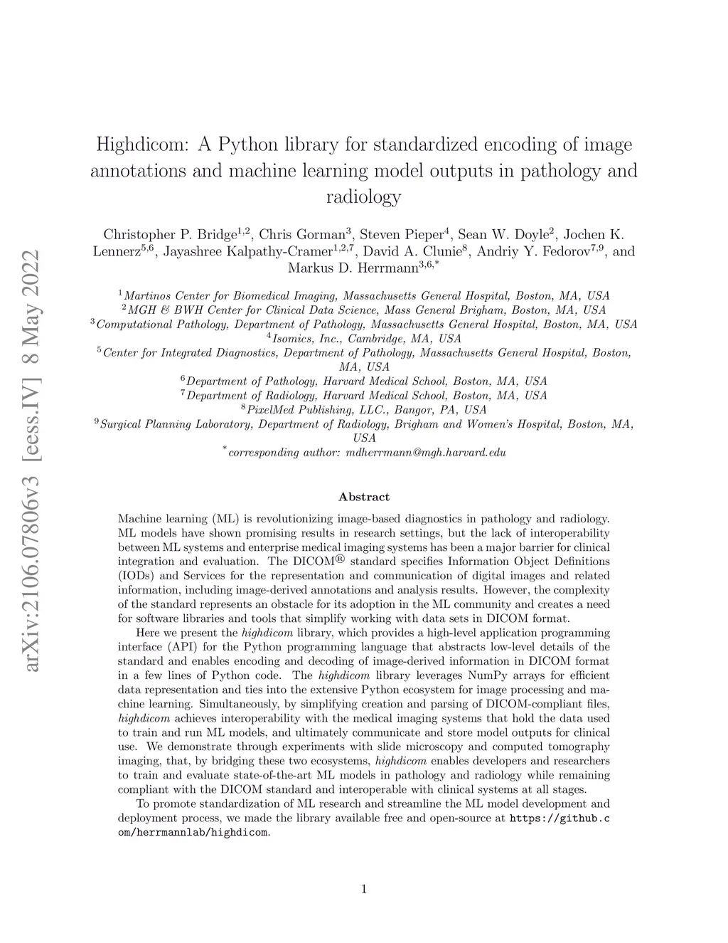 Highdicom: A Python library for standardized encoding of image