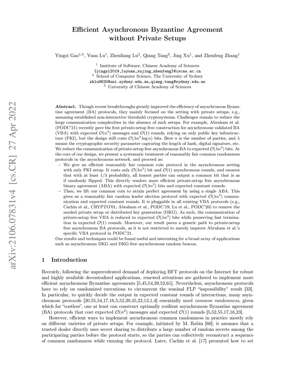 Efficient asynchronous Byzantine agreement (BA) protocols were mostly studied with private setups, e.g., pre-setup threshold cryptosystem. Challenges remain to reduce the large communication in the absence of such setups. Recently, Abraham et al. (PODC'21) presented the first asynchronous validated BA (VBA) with expected messages and rounds, relying on only public key infrastructure (PKI) setup, but the design still costs bits. Here is the number of parties, and is a cryptographic security parameter. In this paper, we reduce the communication of private-setup free asynchronous BA to expected bits. At the core of our design, we give a systematic treatment of common randomness protocols in the asynchronous network, and proceed as: - We give an efficient reasonably fair common coin protocol in the asynchronous setting with only PKI setup. It costs only bits and rounds, and ensures that with at least 1/3 probability, all honest parties can output a common bit that is as if randomly flipped. This directly renders more efficient private-setup free asynchronous binary agreement (ABA) with expected bits and rounds. - Then, we lift our common coin to attain perfect agreement by using a single ABA. This gives us a reasonably fair random leader election protocol with expected communication and expected constant rounds. It is pluggable in all existing VBA protocols (e.g., Cachin et al., CRYPTO'01; Abraham et al., PODC'19; Lu et al., PODC'20) to remove the needed private setup or distributed key generation (DKG). As such, the communication of private-setup free VBA is reduced to expected bits while preserving fast termination in expected rounds.