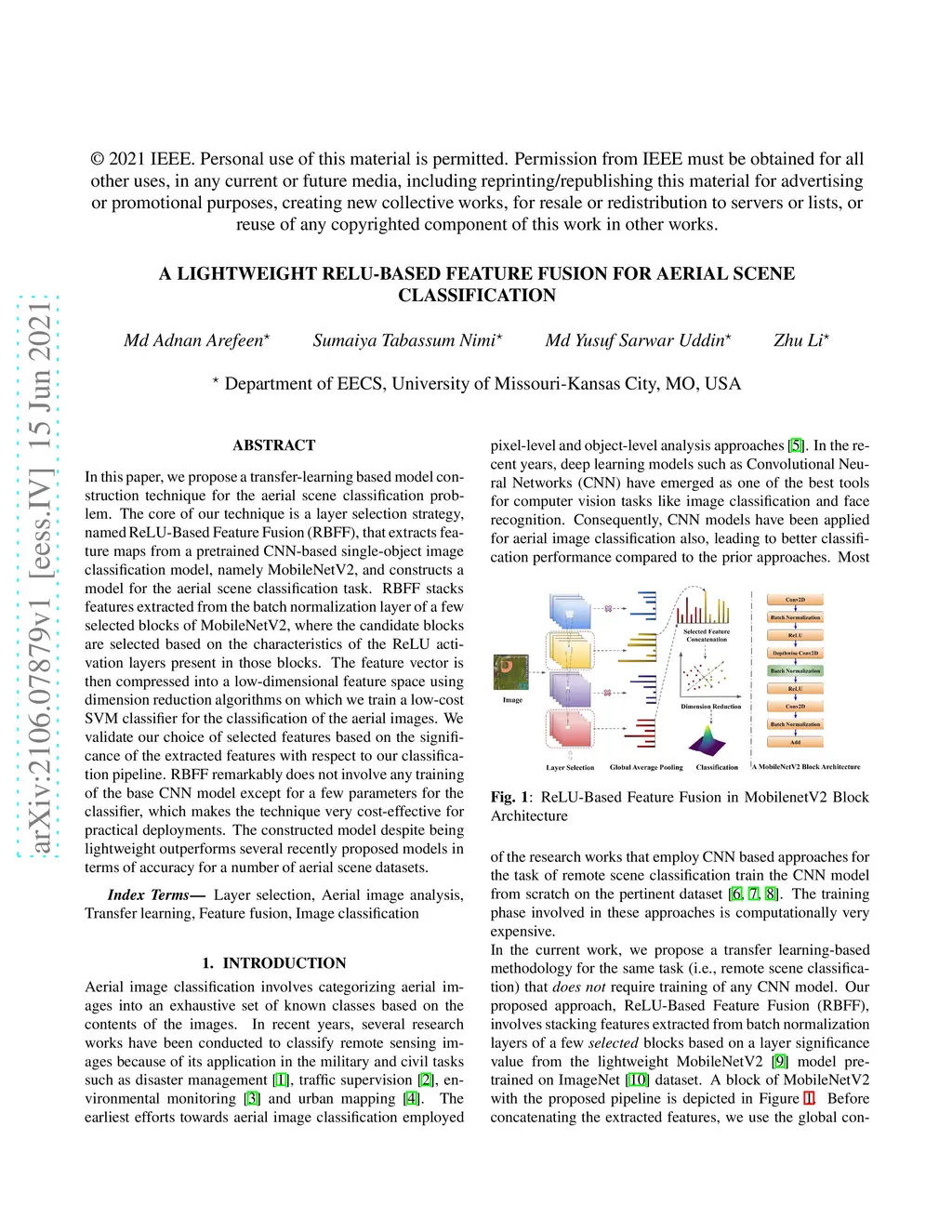 A Lightweight ReLU-Based Feature Fusion for Aerial Scene Classification
