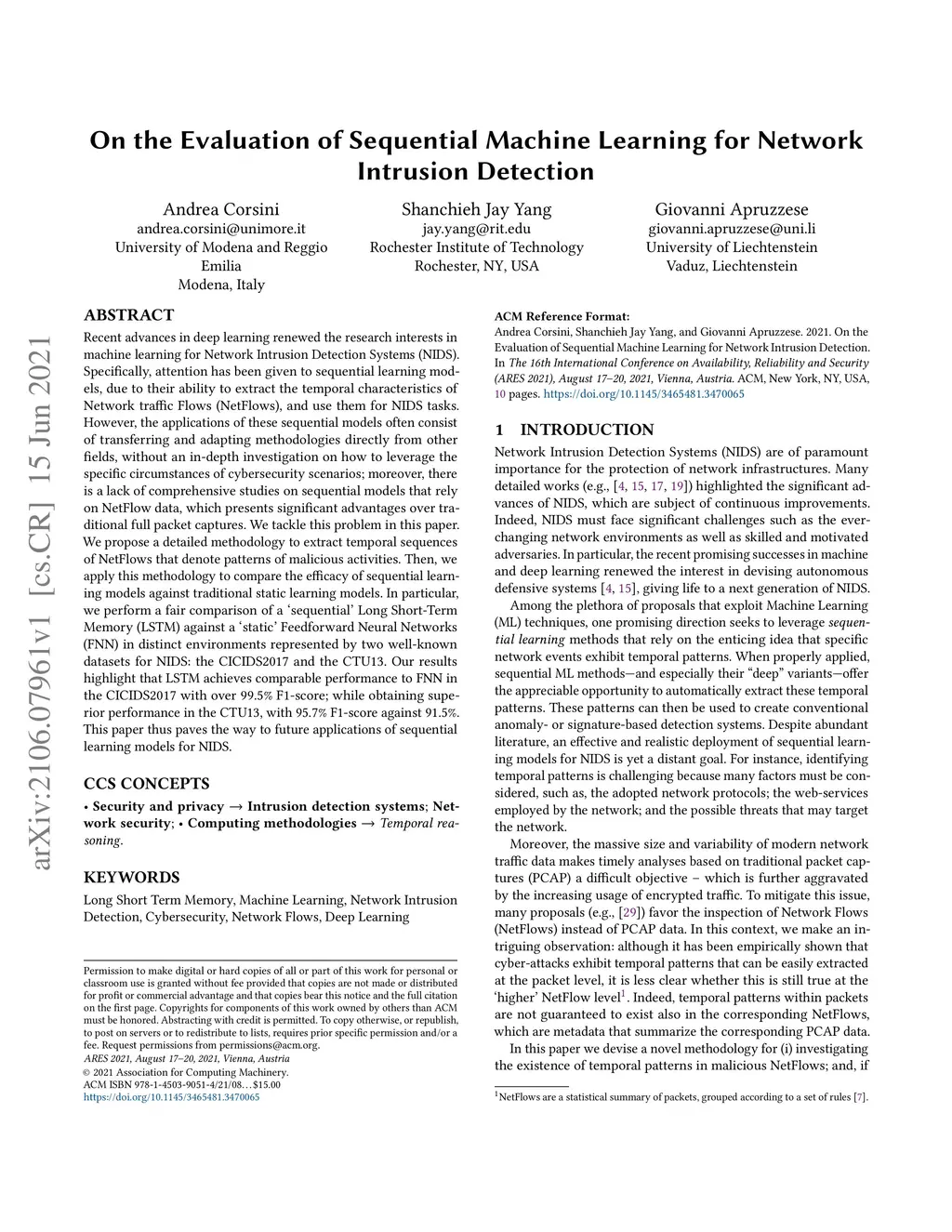 On the Evaluation of Sequential Machine Learning for Network Intrusion