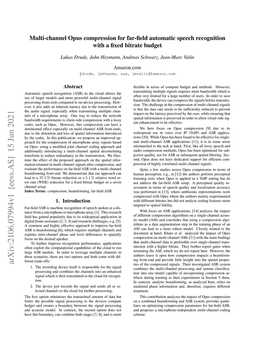 Automatic speech recognition (ASR) in the cloud allows the use of larger models and more powerful multi-channel signal processing front-ends compared to on-device processing. However, it also adds an inherent latency due to the transmission of the audio signal, especially when transmitting multiple channels of a microphone array. One way to reduce the network bandwidth requirements is client-side compression with a lossy codec such as Opus. However, this compression can have a detrimental effect especially on multi-channel ASR front-ends, due to the distortion and loss of spatial information introduced by the codec. In this publication, we propose an improved approach for the compression of microphone array signals based on Opus, using a modified joint channel coding approach and additionally introducing a multi-channel spatial decorrelating transform to reduce redundancy in the transmission. We illustrate the effect of the proposed approach on the spatial information retained in multi-channel signals after compression, and evaluate the performance on far-field ASR with a multi-channel beamforming front-end. We demonstrate that our approach can lead to a 37.5 % bitrate reduction or a 5.1 % relative word error rate reduction for a fixed bitrate budget in a seven channel setup.