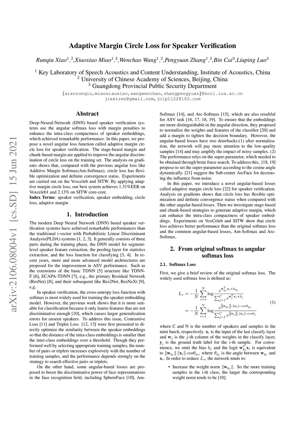 Deep-Neural-Network (DNN) based speaker verification sys-tems use the angular softmax loss with margin penalties toenhance the intra-class compactness of speaker embeddings,which achieved remarkable performance. In this paper, we pro-pose a novel angular loss function called adaptive margin cir-cle loss for speaker verification. The stage-based margin andchunk-based margin are applied to improve the angular discrim-ination of circle loss on the training set. The analysis on gradi-ents shows that, compared with the previous angular loss likeAdditive Margin Softmax(Am-Softmax), circle loss has flexi-ble optimization and definite convergence status. Experimentsare carried out on the Voxceleb and SITW. By applying adap-tive margin circle loss, our best system achieves 1.31%EER onVoxceleb1 and 2.13% on SITW core-core.