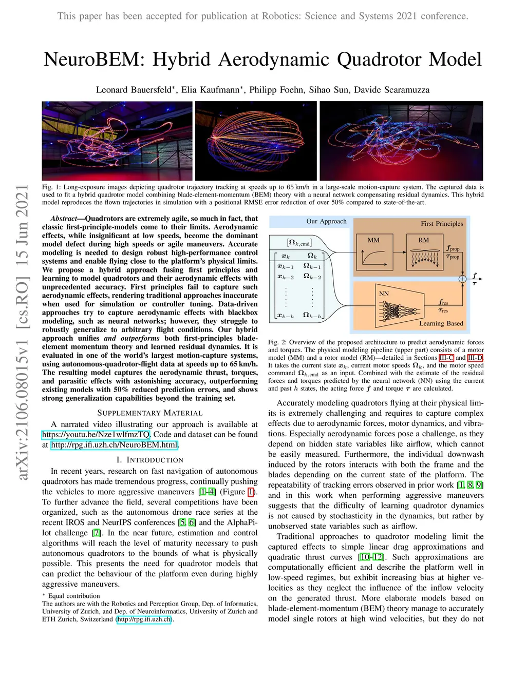 Quadrotors are extremely agile, so much in fact, that classic first-principle-models come to their limits. Aerodynamic effects, while insignificant at low speeds, become the dominant model defect during high speeds or agile maneuvers. Accurate modeling is needed to design robust high-performance control systems and enable flying close to the platform's physical limits. We propose a hybrid approach fusing first principles and learning to model quadrotors and their aerodynamic effects with unprecedented accuracy. First principles fail to capture such aerodynamic effects, rendering traditional approaches inaccurate when used for simulation or controller tuning. Data-driven approaches try to capture aerodynamic effects with blackbox modeling, such as neural networks; however, they struggle to robustly generalize to arbitrary flight conditions. Our hybrid approach unifies and outperforms both first-principles blade-element theory and learned residual dynamics. It is evaluated in one of the world's largest motion-capture systems, using autonomous-quadrotor-flight data at speeds up to 65km/h. The resulting model captures the aerodynamic thrust, torques, and parasitic effects with astonishing accuracy, outperforming existing models with 50% reduced prediction errors, and shows strong generalization capabilities beyond the training set.