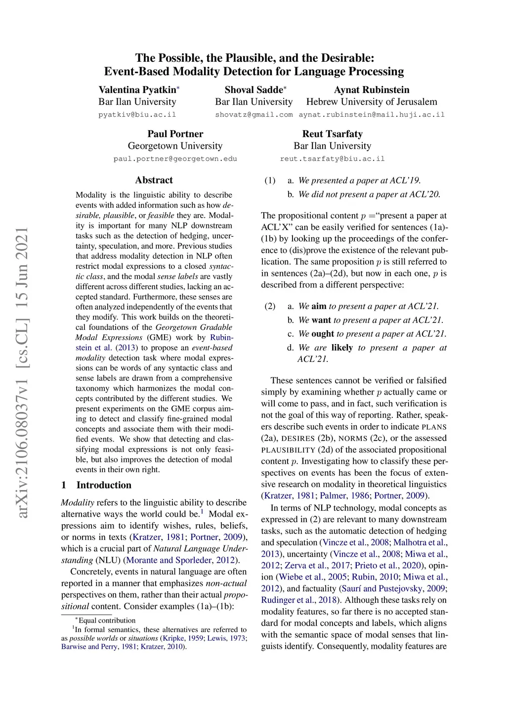Modality is the linguistic ability to describe events with added information such as how desirable, plausible, or feasible they are. Modality is important for many NLP downstream tasks such as the detection of hedging, uncertainty, speculation, and more. Previous studies that address modality detection in NLP often restrict modal expressions to a closed syntactic class, and the modal sense labels are vastly different across different studies, lacking an accepted standard. Furthermore, these senses are often analyzed independently of the events that they modify. This work builds on the theoretical foundations of the Georgetown Gradable Modal Expressions (GME) work by Rubinstein et al. (2013) to propose an event-based modality detection task where modal expressions can be words of any syntactic class and sense labels are drawn from a comprehensive taxonomy which harmonizes the modal concepts contributed by the different studies. We present experiments on the GME corpus aiming to detect and classify fine-grained modal concepts and associate them with their modified events. We show that detecting and classifying modal expressions is not only feasible, but also improves the detection of modal events in their own right.