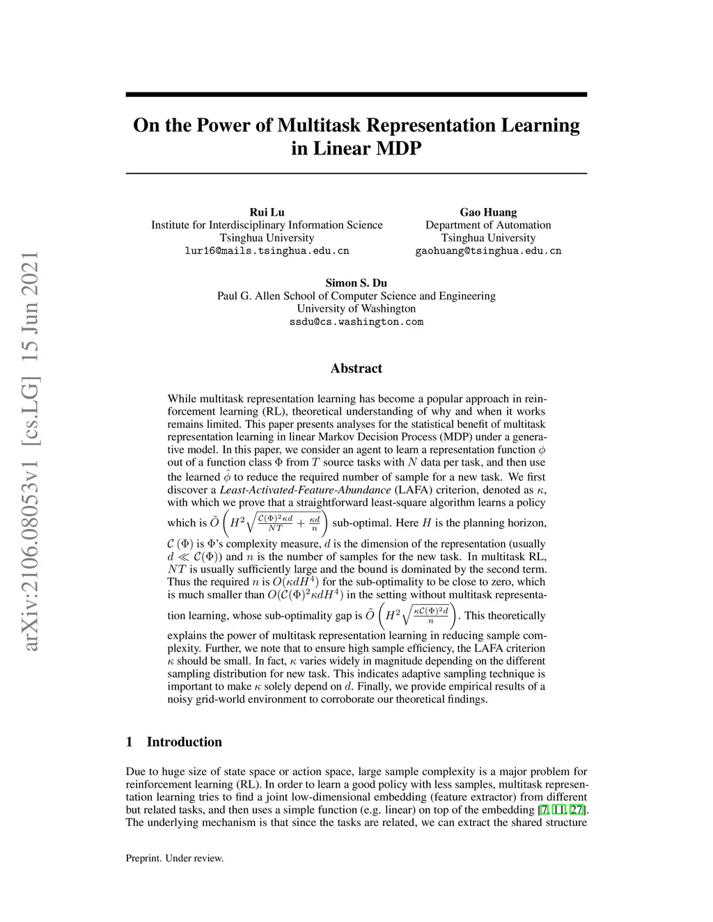 On the Power of Multitask Representation Learning in Linear MDP