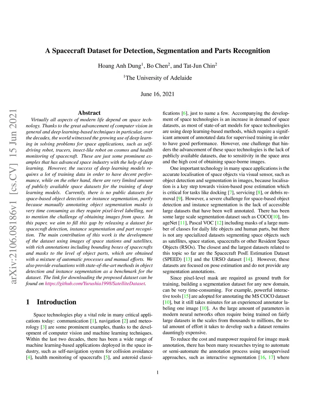 A Spacecraft Dataset for Detection, Segmentation and Parts Recognition