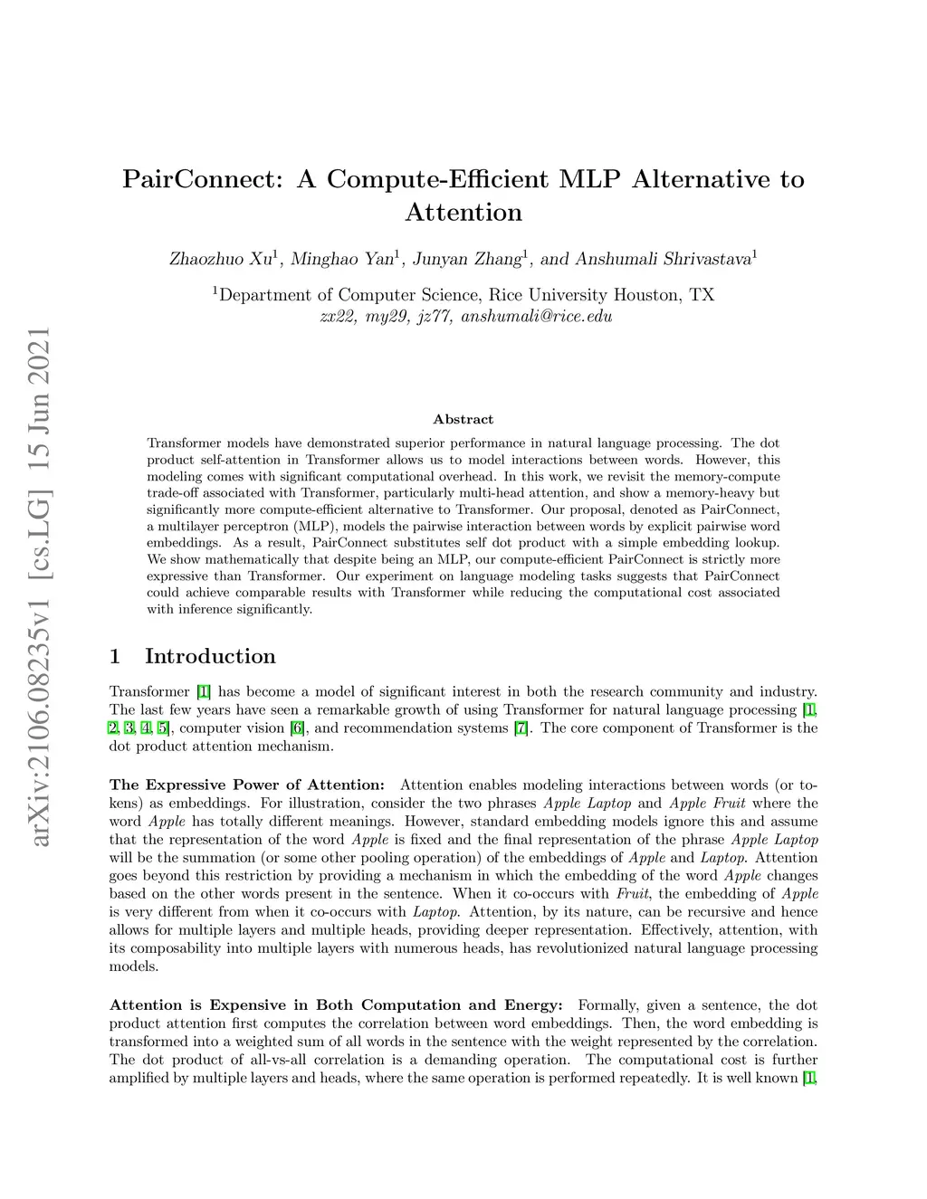 PairConnect: A Compute-Efficient MLP Alternative to Attention