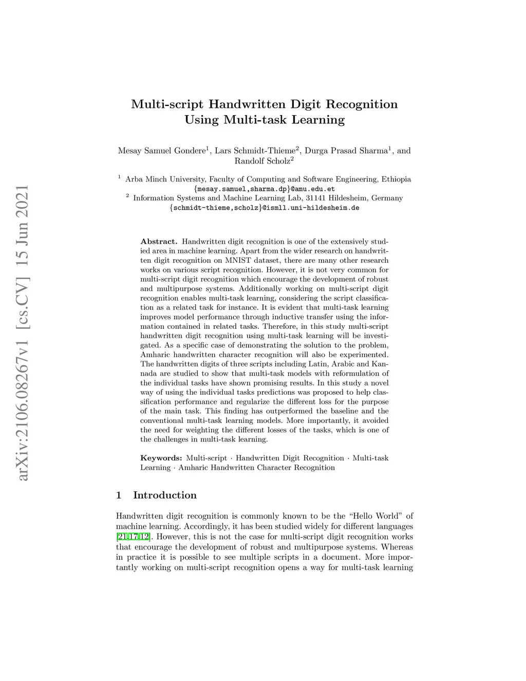 Multi-script Handwritten Digit Recognition Using Multi-task Learning