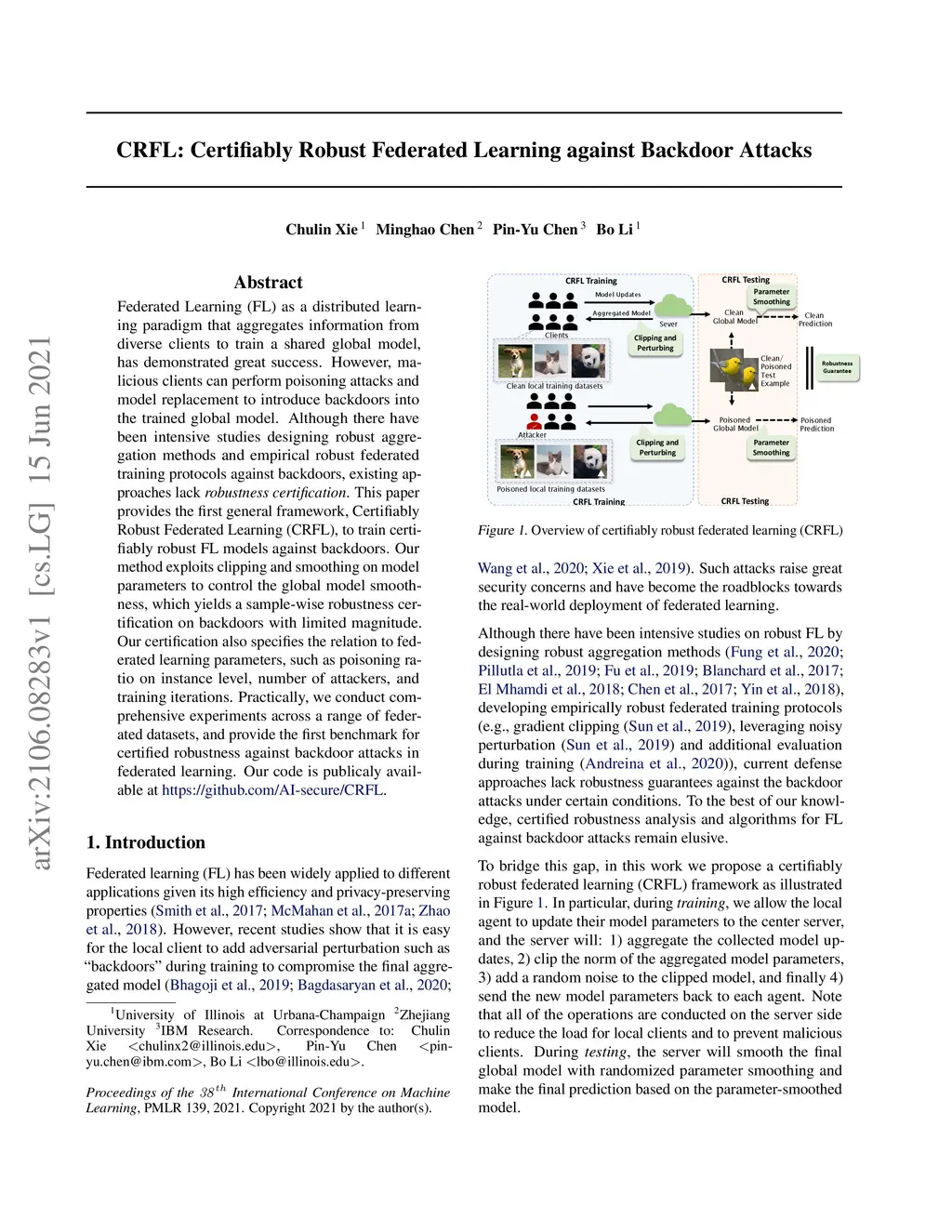 CRFL: Certifiably Robust Federated Learning against Backdoor Attacks