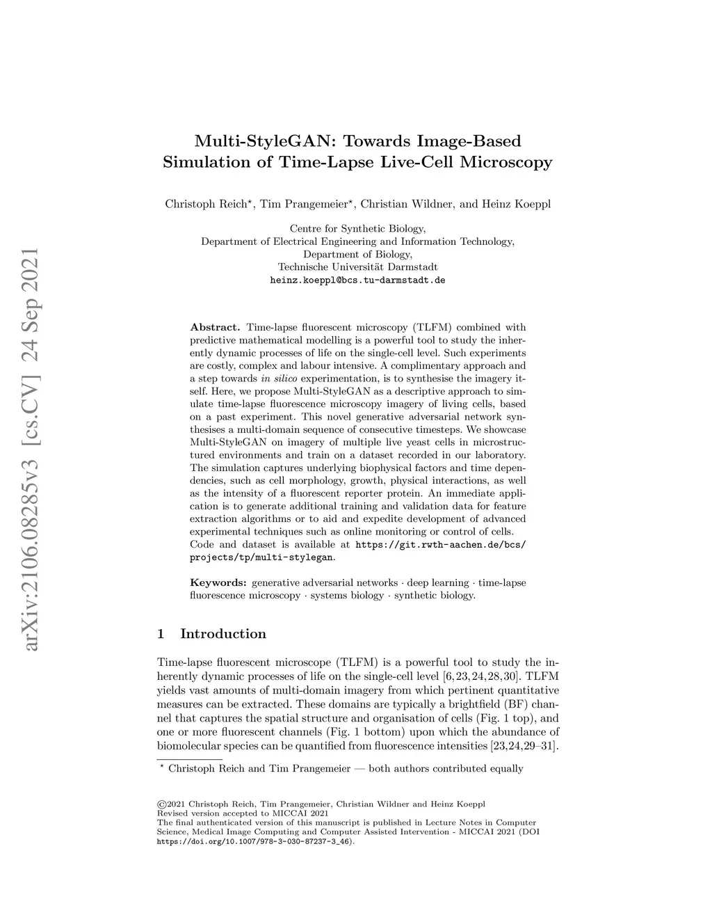 Multi-StyleGAN: Towards Image-Based Simulation of Time-Lapse Live-Cell