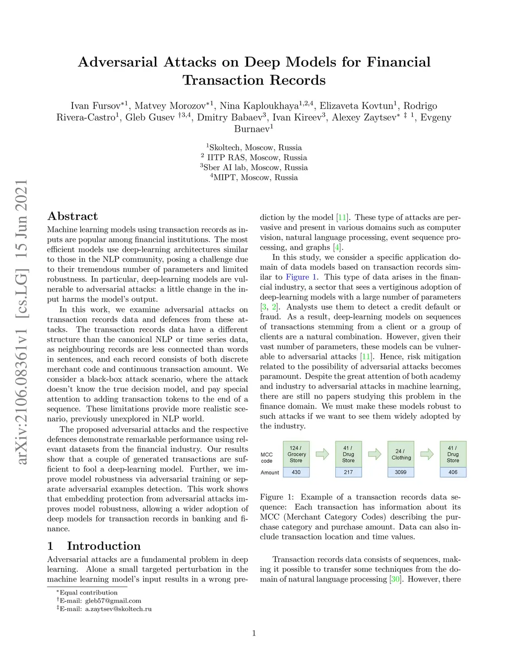 Adversarial Attacks on Deep Models for Financial Transaction Records