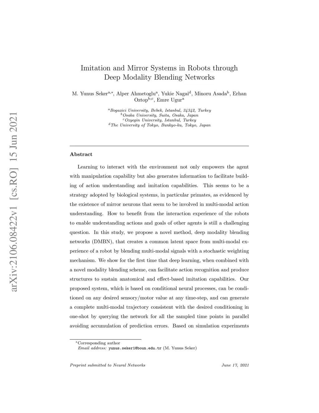 Imitation and Mirror Systems in Robots through Deep Modality Blending