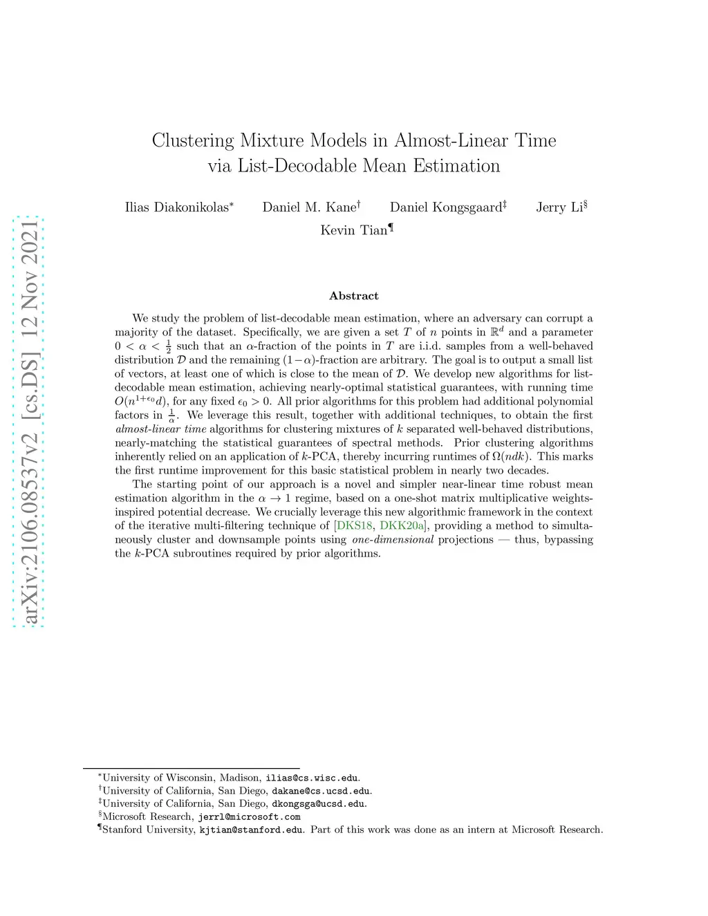 Clustering Mixture Models in Almost-Linear Time via List-Decodable Mean