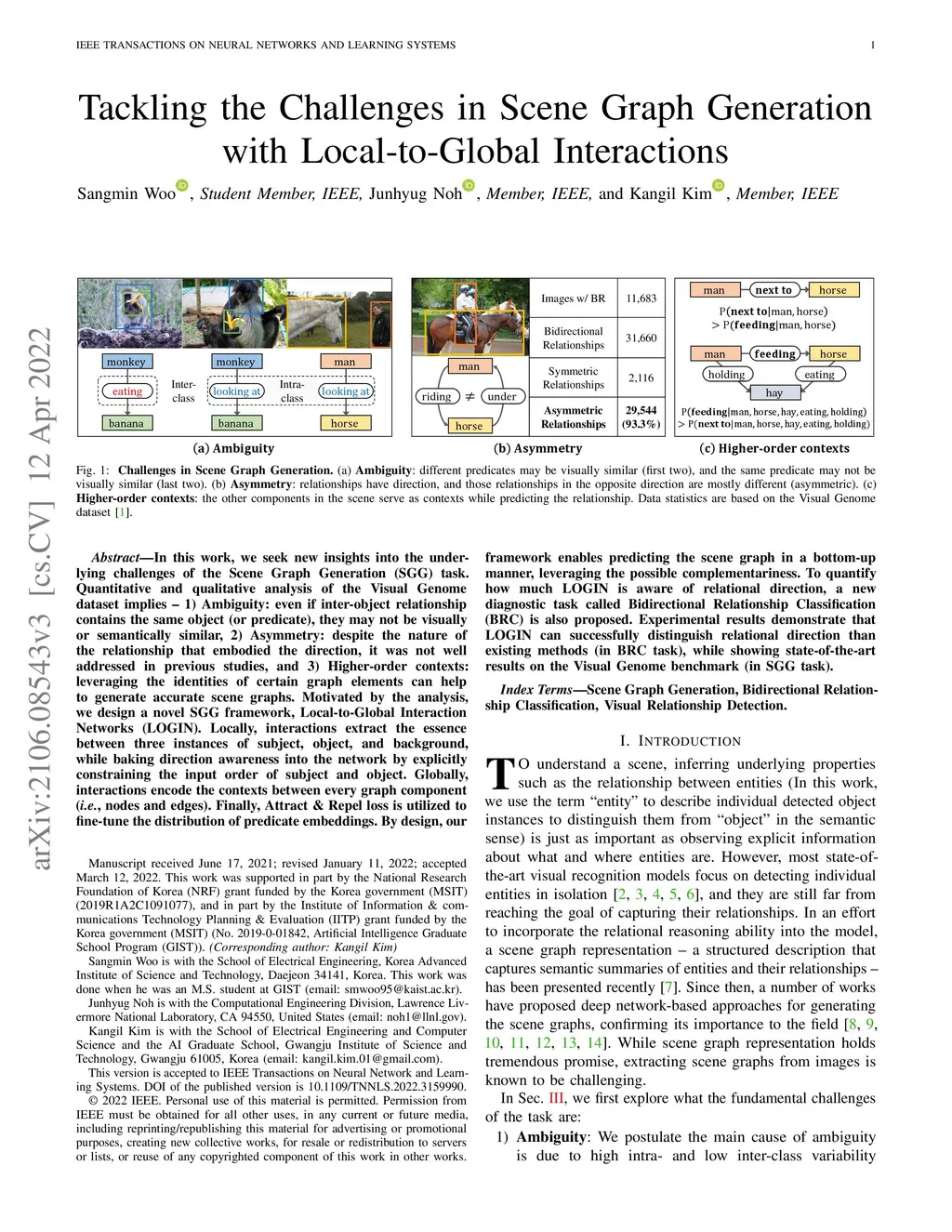 In this work, we seek new insights into the underlying challenges of the Scene Graph Generation (SGG) task. Quantitative and qualitative analysis of the Visual Genome dataset implies -- 1) Ambiguity: even if inter-object relationship contains the same object (or predicate), they may not be visually or semantically similar, 2) Asymmetry: despite the nature of the relationship that embodied the direction, it was not well addressed in previous studies, and 3) Higher-order contexts: leveraging the identities of certain graph elements can help to generate accurate scene graphs. Motivated by the analysis, we design a novel SGG framework, Local-to-Global Interaction Networks (LOGIN). Locally, interactions extract the essence between three instances of subject, object, and background, while baking direction awareness into the network by explicitly constraining the input order of subject and object. Globally, interactions encode the contexts between every graph component (i.e., nodes and edges). Finally, Attract & Repel loss is utilized to fine-tune the distribution of predicate embeddings. By design, our framework enables predicting the scene graph in a bottom-up manner, leveraging the possible complementariness. To quantify how much LOGIN is aware of relational direction, a new diagnostic task called Bidirectional Relationship Classification (BRC) is also proposed. Experimental results demonstrate that LOGIN can successfully distinguish relational direction than existing methods (in BRC task), while showing state-of-the-art results on the Visual Genome benchmark (in SGG task).