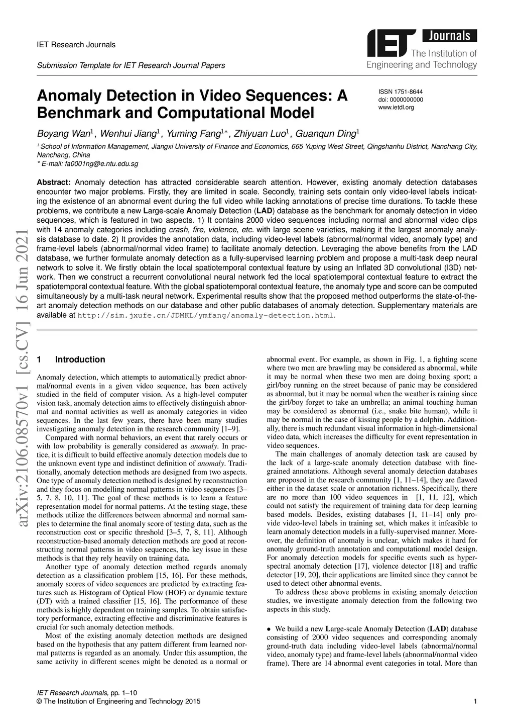 Anomaly Detection in Video Sequences: A Benchmark and Computational