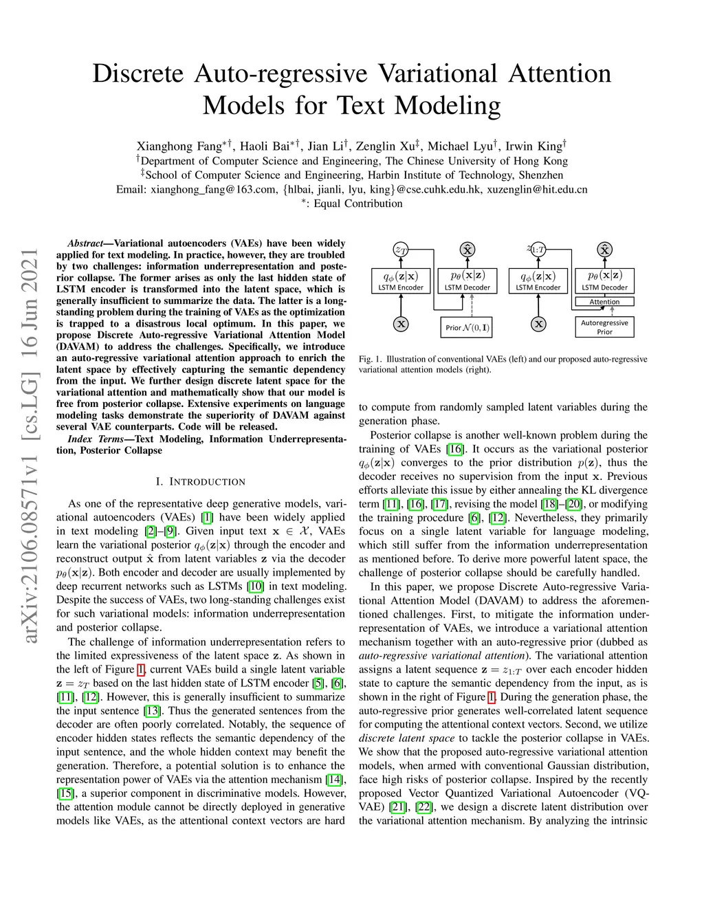 Discrete Auto-regressive Variational Attention Models for Text Modeling