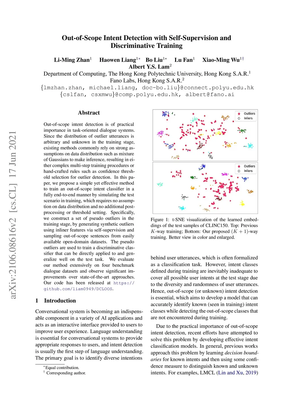 Out-of-Scope Intent Detection with Self-Supervision and Discriminative