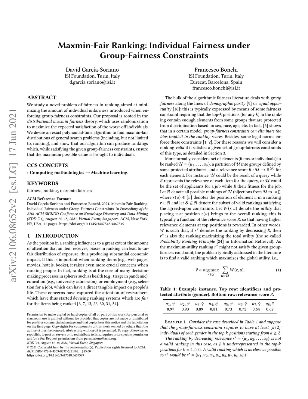 We study a novel problem of fairness in ranking aimed at minimizing the amount of individual unfairness introduced when enforcing group-fairness constraints. Our proposal is rooted in the distributional maxmin fairness theory, which uses randomization to maximize the expected satisfaction of the worst-off individuals. We devise an exact polynomial-time algorithm to find maxmin-fair distributions of general search problems (including, but not limited to, ranking), and show that our algorithm can produce rankings which, while satisfying the given group-fairness constraints, ensure that the maximum possible value is brought to individuals.
