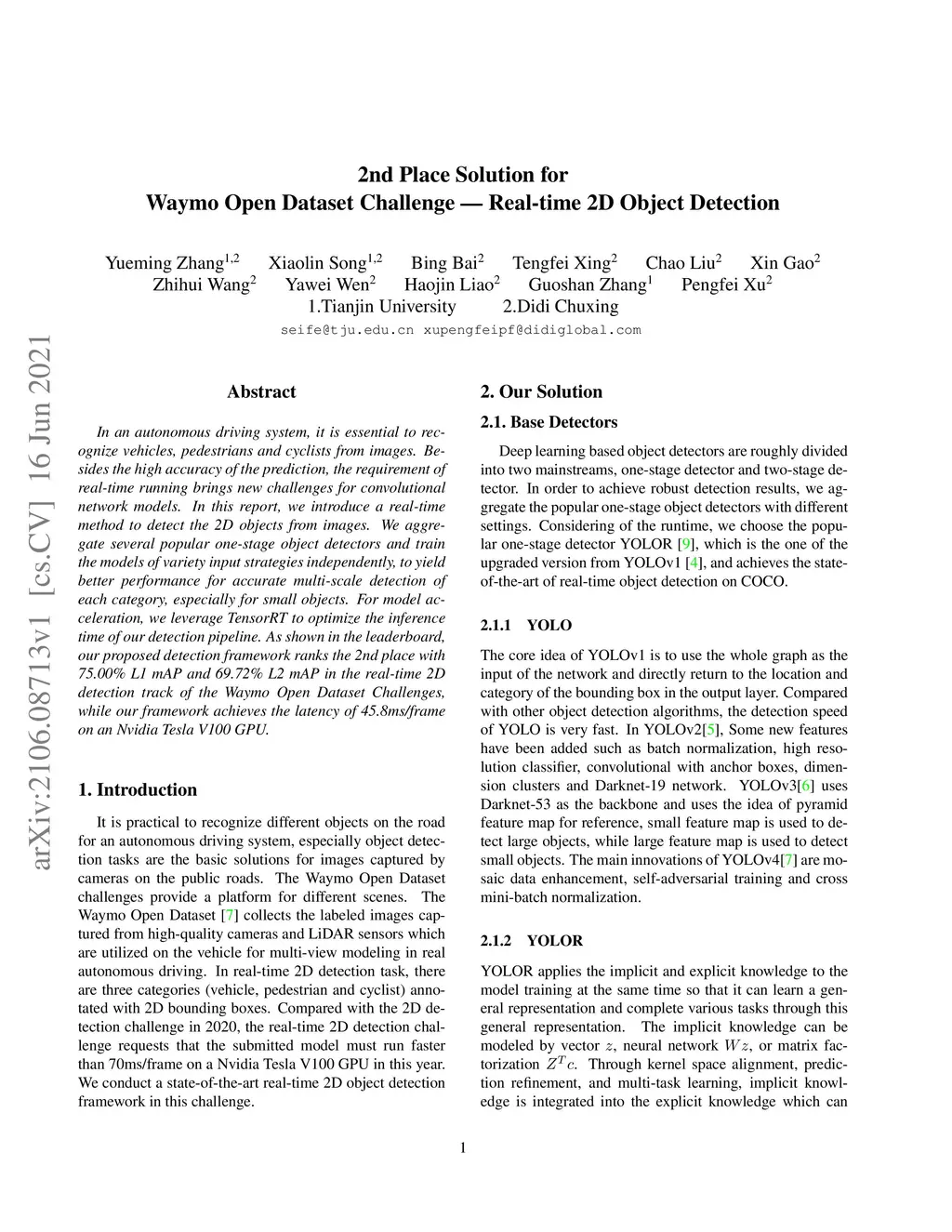 2nd Place Solution for Waymo Open Dataset Challenge -- Real-time 2D