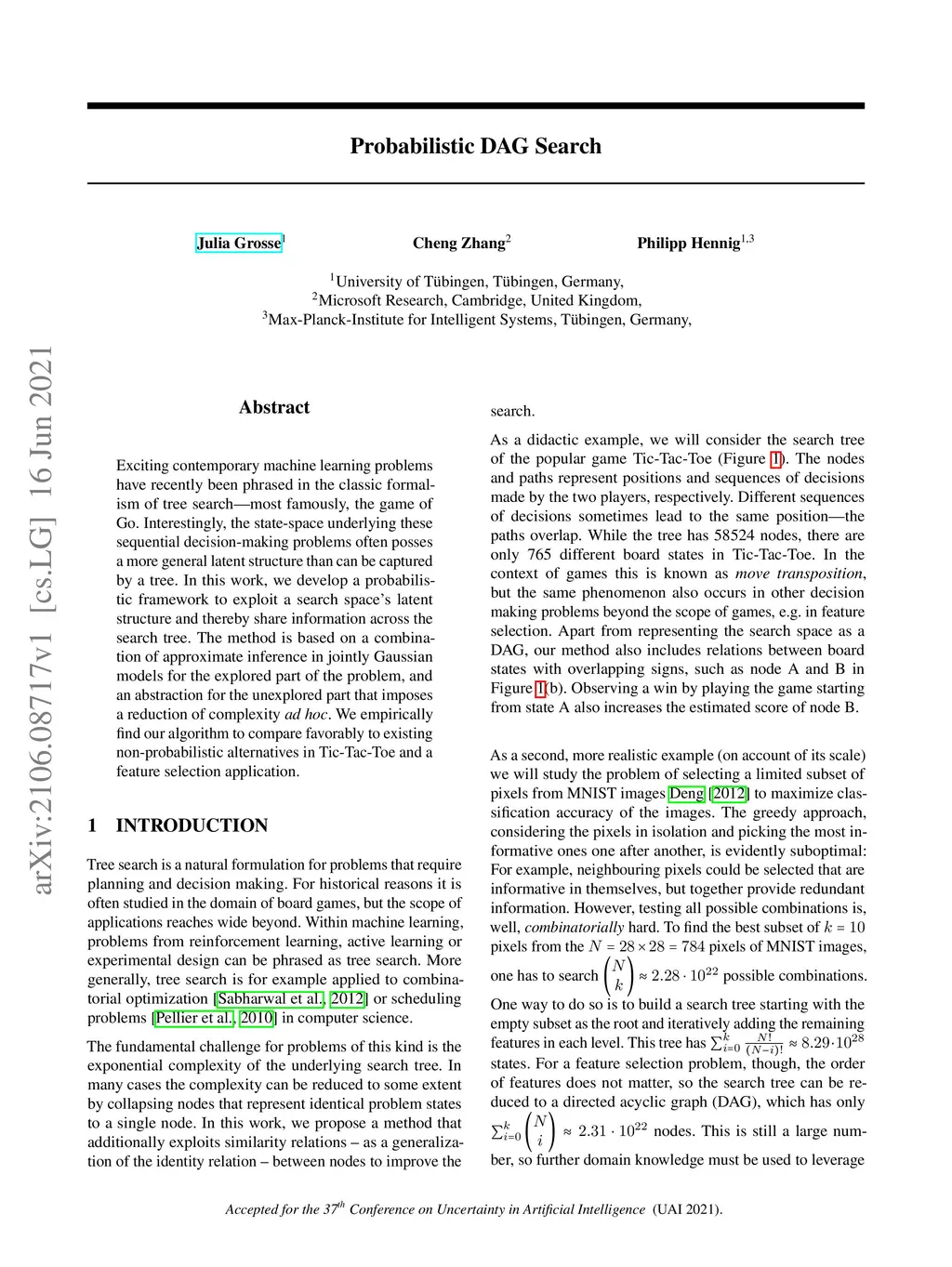 Exciting contemporary machine learning problems have recently been phrased in the classic formalism of tree search -- most famously, the game of Go. Interestingly, the state-space underlying these sequential decision-making problems often posses a more general latent structure than can be captured by a tree. In this work, we develop a probabilistic framework to exploit a search space's latent structure and thereby share information across the search tree. The method is based on a combination of approximate inference in jointly Gaussian models for the explored part of the problem, and an abstraction for the unexplored part that imposes a reduction of complexity ad hoc. We empirically find our algorithm to compare favorably to existing non-probabilistic alternatives in Tic-Tac-Toe and a feature selection application.