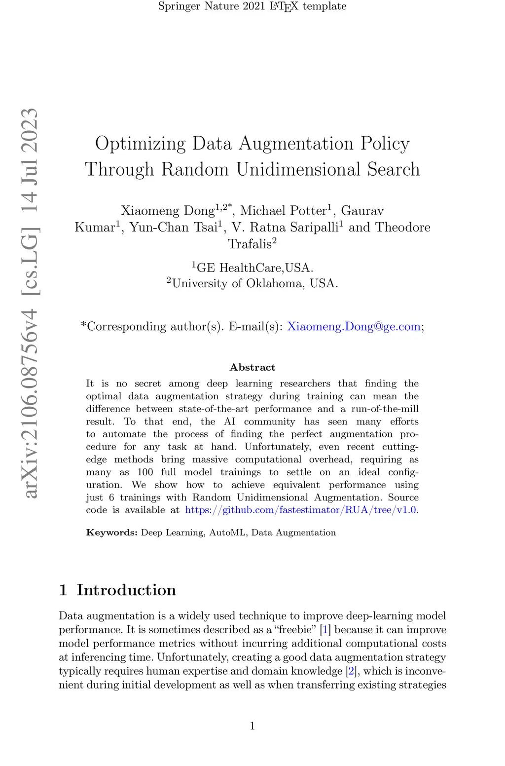 It is no secret amongst deep learning researchers that finding the optimal data augmentation strategy during training can mean the difference between state-of-the-art performance and a run-of-the-mill result. To that end, the community has seen many efforts to automate the process of finding the perfect augmentation procedure for any task at hand. Unfortunately, even recent cutting-edge methods bring massive computational overhead, requiring as many as 100 full model trainings to settle on an ideal configuration. We show how to achieve equivalent performance using just 6 trainings with Random Unidimensional Augmentation. Source code is available at https://github.com/fastestimator/RUA/tree/v1.0