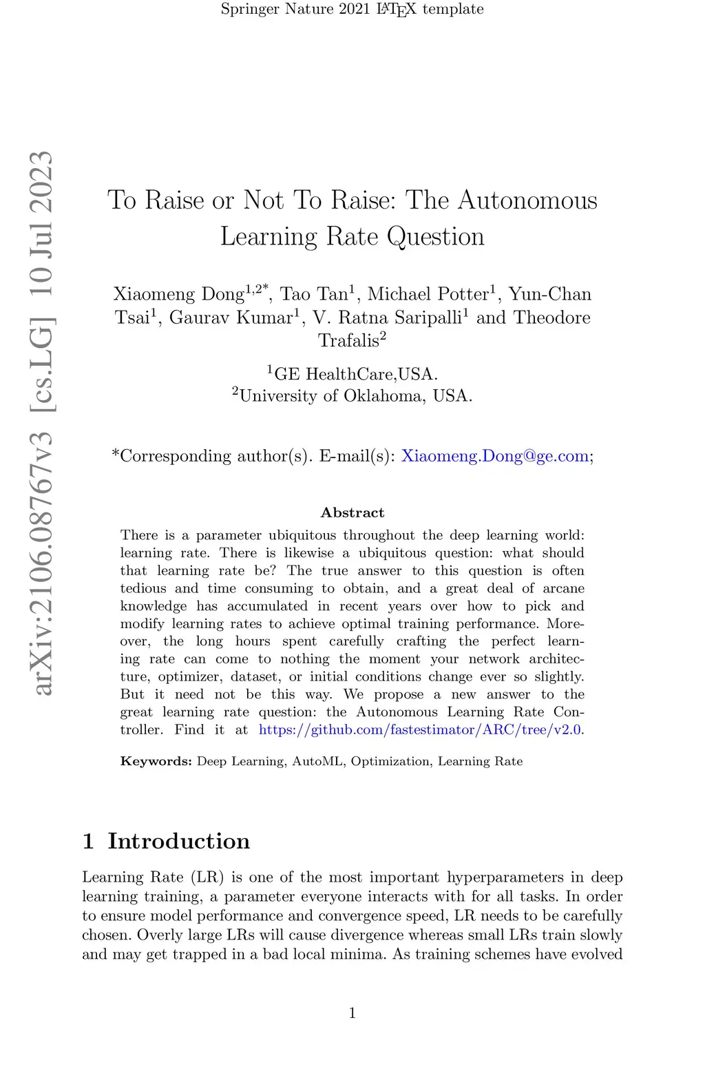 To Raise or Not To Raise: The Autonomous Learning Rate Question