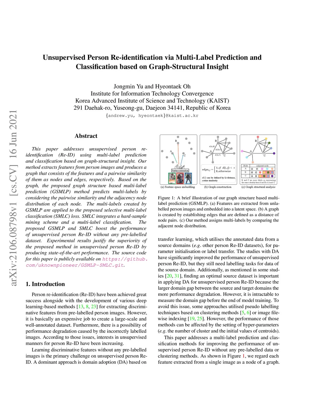 This paper addresses unsupervised person re-identification (Re-ID) using multi-label prediction and classification based on graph-structural insight. Our method extracts features from person images and produces a graph that consists of the features and a pairwise similarity of them as nodes and edges, respectively. Based on the graph, the proposed graph structure based multi-label prediction (GSMLP) method predicts multi-labels by considering the pairwise similarity and the adjacency node distribution of each node. The multi-labels created by GSMLP are applied to the proposed selective multi-label classification (SMLC) loss. SMLC integrates a hard-sample mining scheme and a multi-label classification. The proposed GSMLP and SMLC boost the performance of unsupervised person Re-ID without any pre-labelled dataset. Experimental results justify the superiority of the proposed method in unsupervised person Re-ID by producing state-of-the-art performance. The source code for this paper is publicly available on 'https://github.com/uknownpioneer/GSMLP-SMLC.git'.