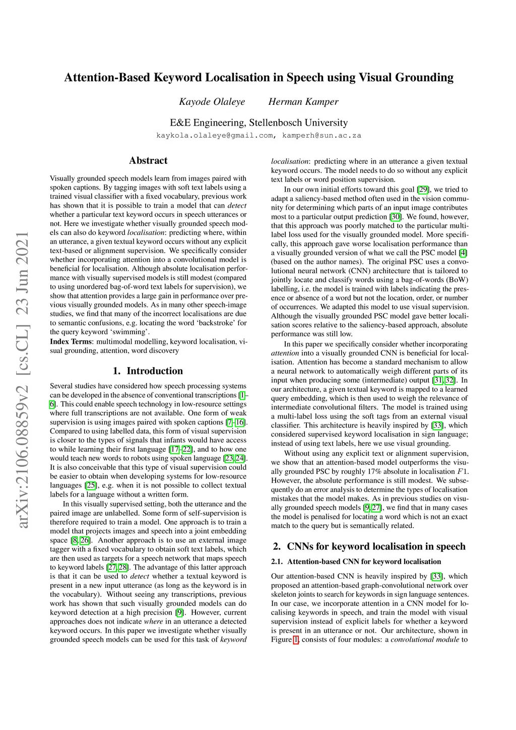 Attention-Based Keyword Localisation in Speech using Visual Grounding