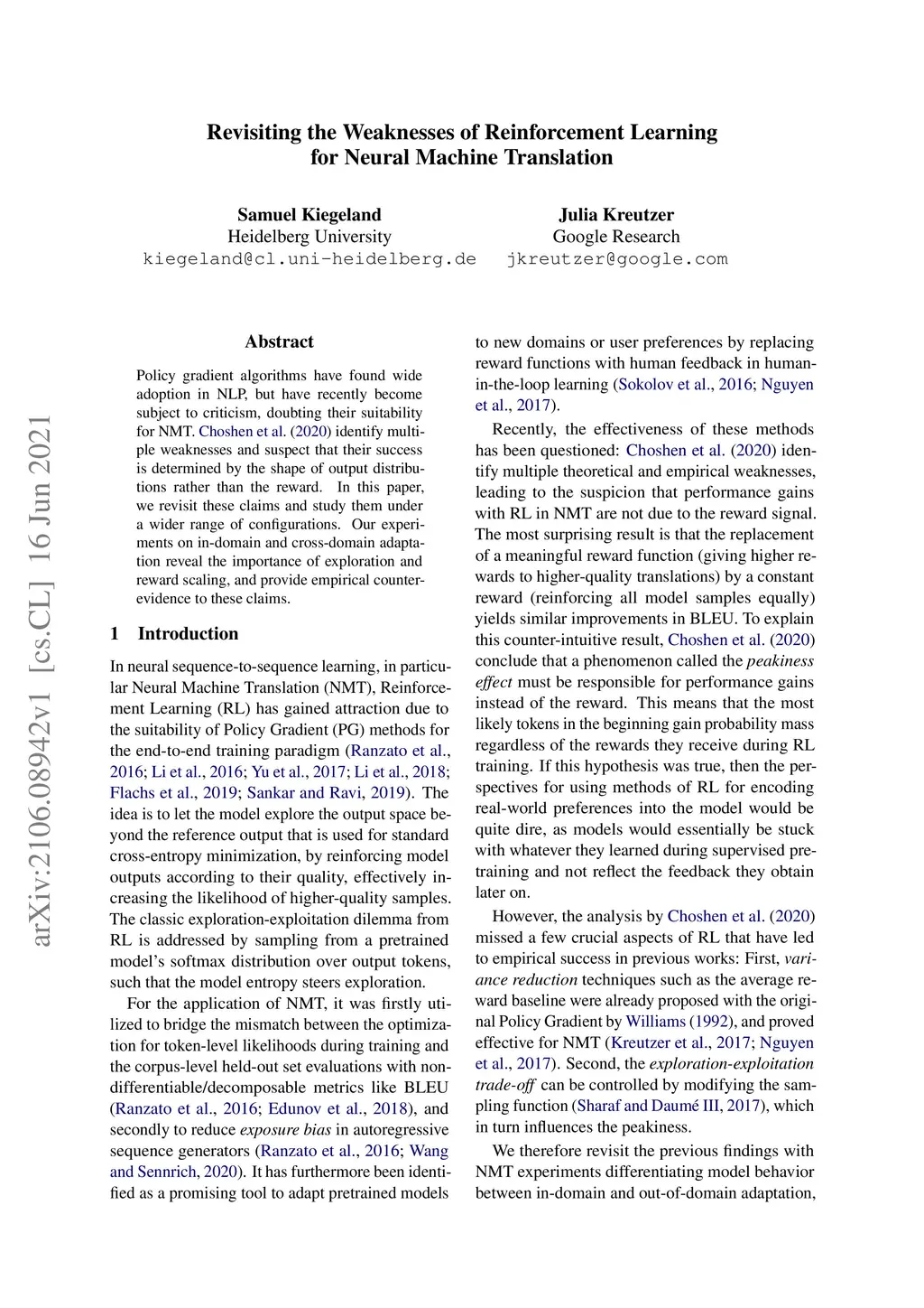 Policy gradient algorithms have found wide adoption in NLP, but have recently become subject to criticism, doubting their suitability for NMT. Choshen et al. (2020) identify multiple weaknesses and suspect that their success is determined by the shape of output distributions rather than the reward. In this paper, we revisit these claims and study them under a wider range of configurations. Our experiments on in-domain and cross-domain adaptation reveal the importance of exploration and reward scaling, and provide empirical counter-evidence to these claims.