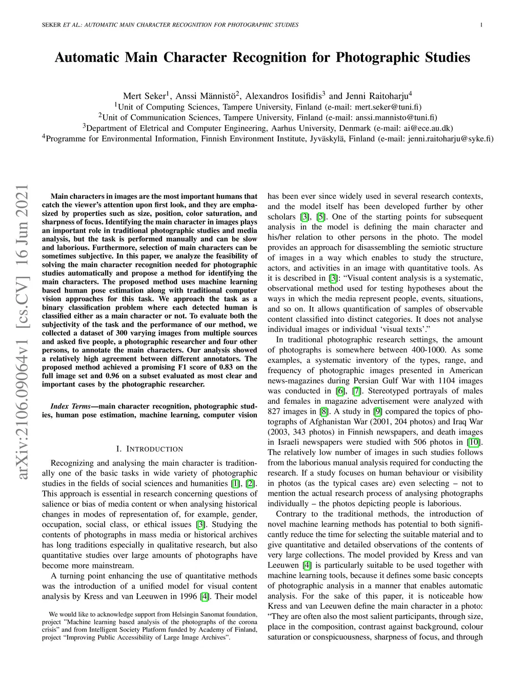 Automatic Main Character Recognition for Photographic Studies
