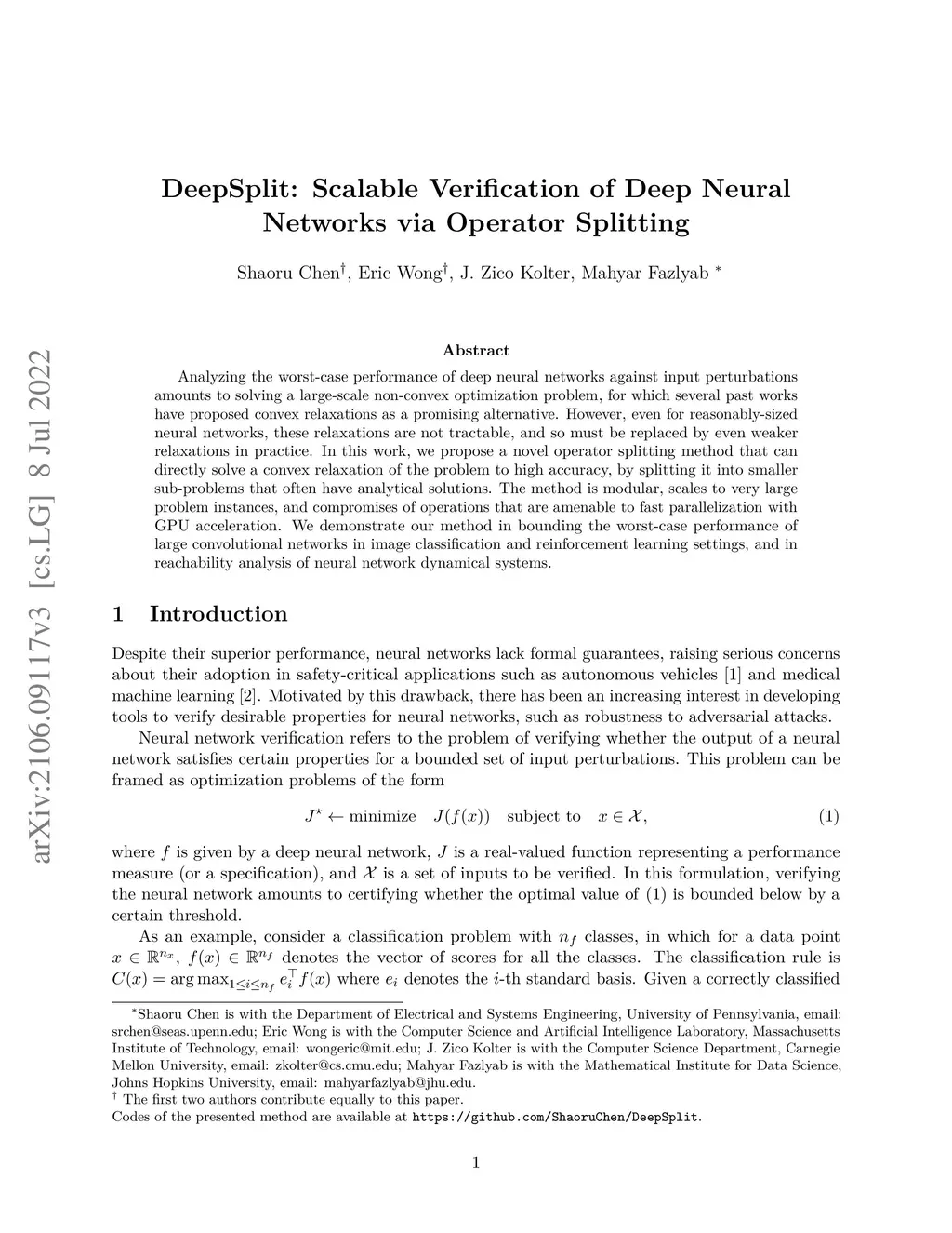 DeepSplit: Scalable Verification of Deep Neural Networks via Operator